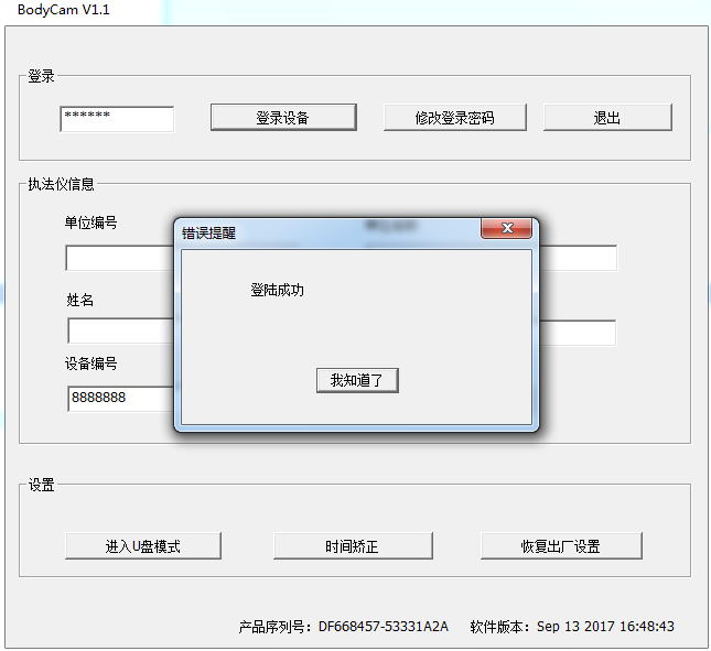 视频回放:设备在开机状态下,用数据线连接电脑通过上位机输入密码后进入操作。