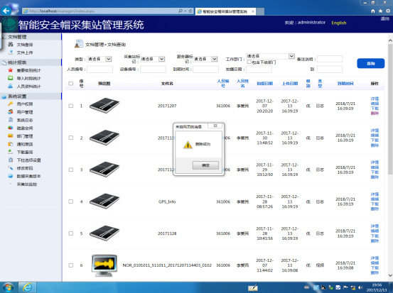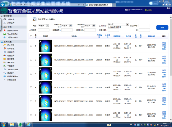用户可以根据实际需要选择并输入相应的条件然后单击【查询】按钮进行查询,如按【类型】、【采集站标记】级别、【服务器标记】级别、【工作部门】、【备注说明】、【人员编号】、【设备编号】、【到期时间】、【拍摄日期】进行查询,如图3所示。
