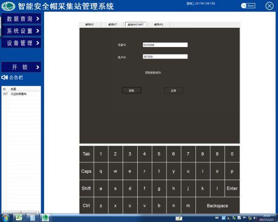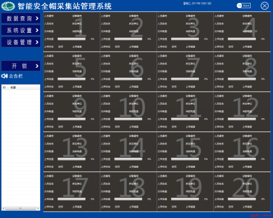 打开智能安全帽采集站管理系统时该上传工具会自动启动,双击上传工具图标打开上传工具(红色箭头标记的那个图标)弹出如图14所示的采集站数据上传工具界面。