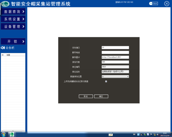 打开桌面上的智能安全帽采集站管理系统快捷方式,如图1红色箭头标记的快捷方式。打开之后进入智能安全帽采集站管理系统主界面,如图2所示。