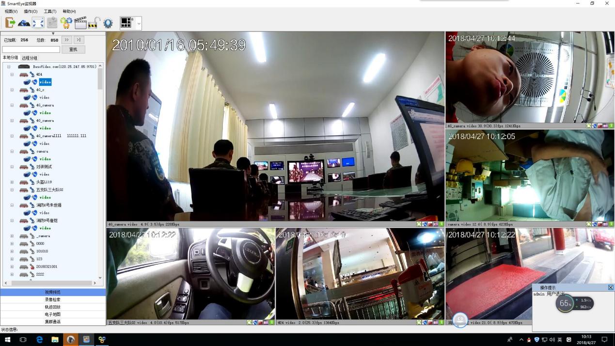 平台支持多窗口显示功能,支持1、4、6、8、9、10、13、14、16、17、22、25、32、64、100画面显示方式;支持自适应、充满窗口、16:9、4:3、全屏等显示模式。