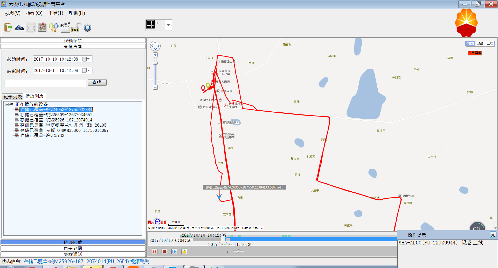 ◆ 录像回放:包括GPS历史轨迹下载回放、设备录像下载回放等;