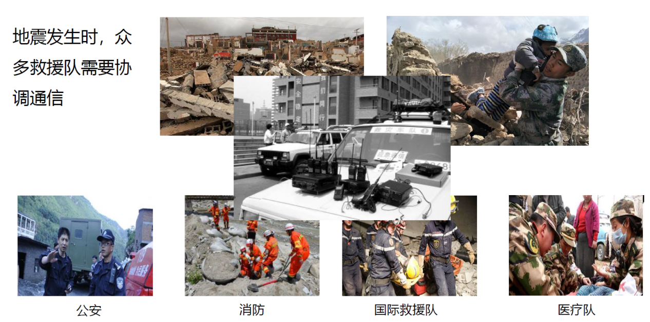 应急领域:目前全国正在大范围建设370MHz PDT数 字集群通信系统。行业之前没有统一的行业通信标 准,因此各种制式通信系统均广泛存在,数字、模 拟、公网对讲机大量共存,公网对讲机又因为平台 不同,也无法做到互联互通,因此也需要简单高效地将这些不同制式对讲终端进行语音融合互通。